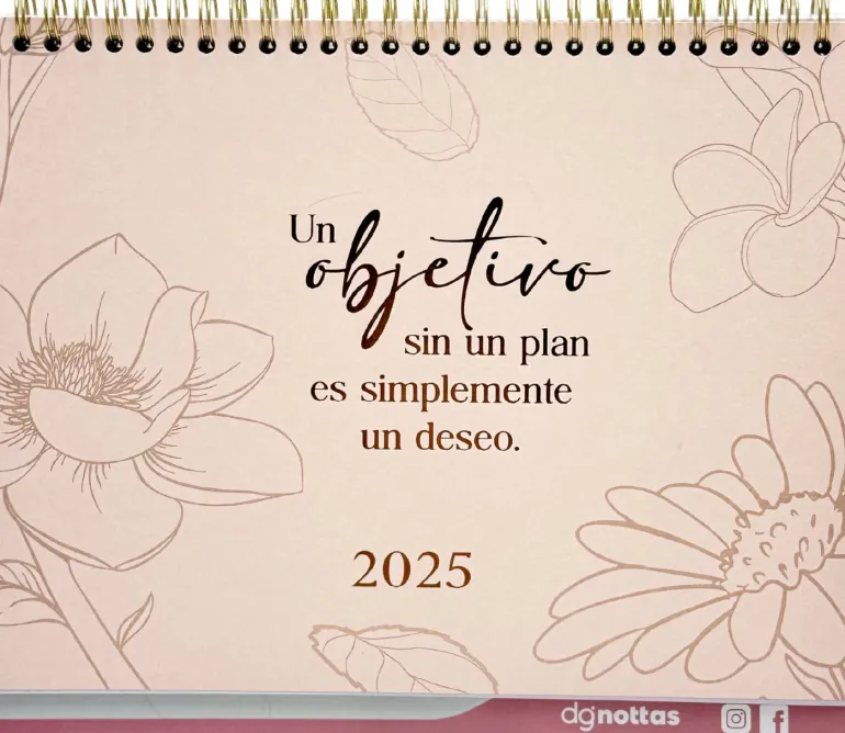Este calendario de 13 meses ofrece un diseño práctico con espacios para escribir de 3.1 x 2.7 cm, ideales para anotar tus compromisos y tareas. Incluye 2 láminas de stickers para personalizarlo y agregar un toque personal. Su acabado en foil dorado le proporciona un estilo elegante y moderno, haciendo de este calendario una herramienta funcional y sofisticada para tu organización anual.