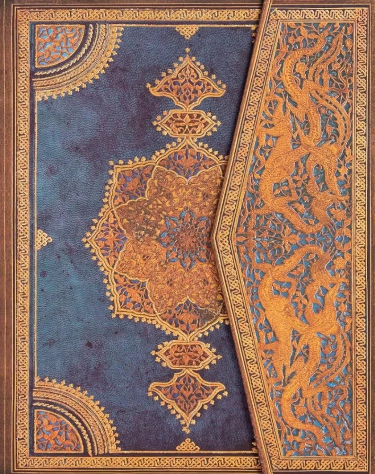 Libreta rayada con solapa de 144 páginas. El diseño Safavid Índigo reproduce un patrón de filigrana en piel con motivos trabajados a mano. En esta nueva paleta destaca la tonalidad de azul persa má…