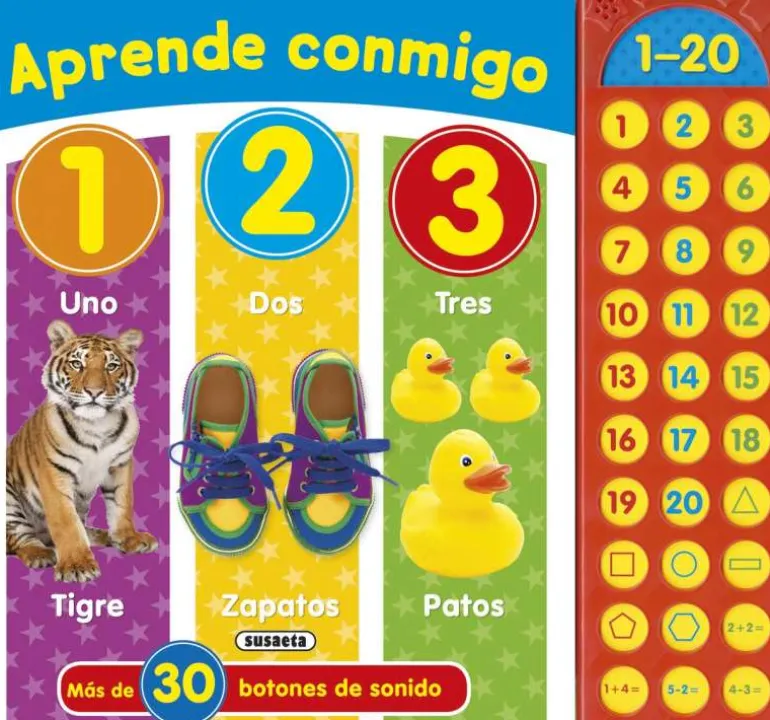 Aprende los números y las formas del 1 al 20 de una manera divertida con este libro que tiene ¡más de 30 botones de sonido!…