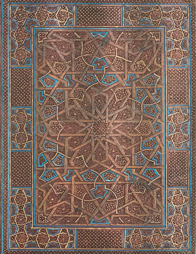 Libreta rayada con cubiertas forradas con papel decorativo impreso, cosido con hilo o encolado.. Este diseño de estrella de doce puntas fue elaborado en el siglo XVI en un taller de El Cairo. Se de…
